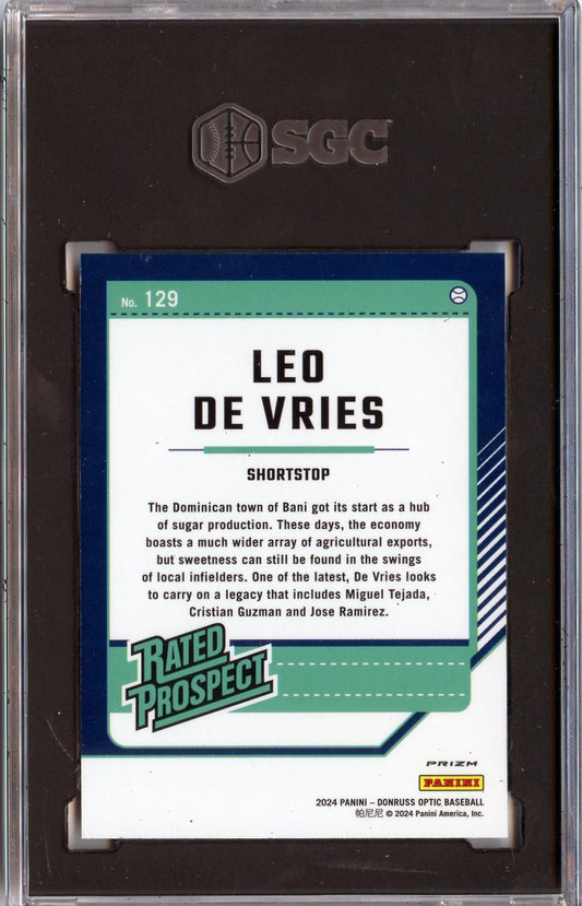 2024 Donruss #129 Leo De Vries Optic Rated Prospect Holo Prizms SGC 9.5 MT+