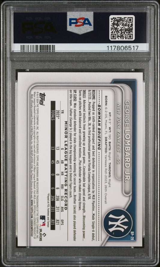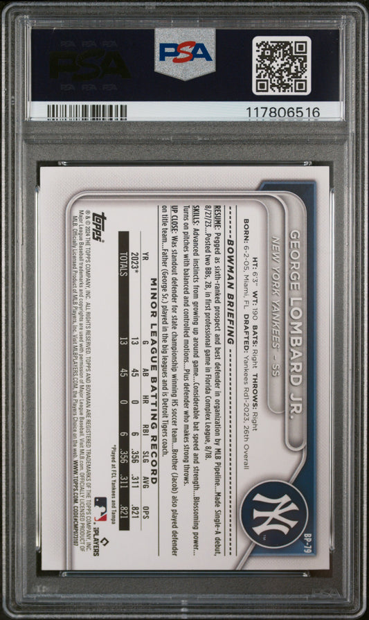 2024 Bowman Paper Prospects #BP79 George Lombard Jr. Yellow PSA 9 MINT 03/75