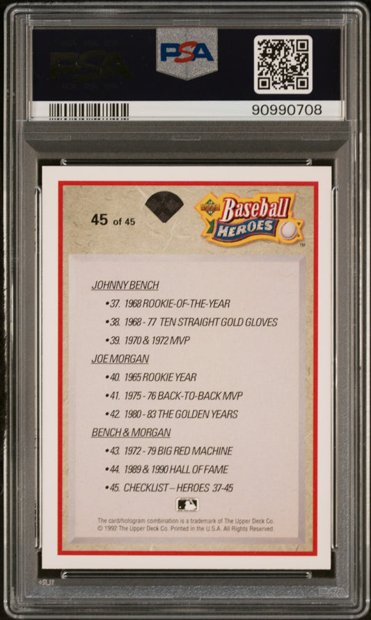 1992 Upper Deck Heroes #45 J.Bench/J.Morgan Checklist PSA 8 NM-MT