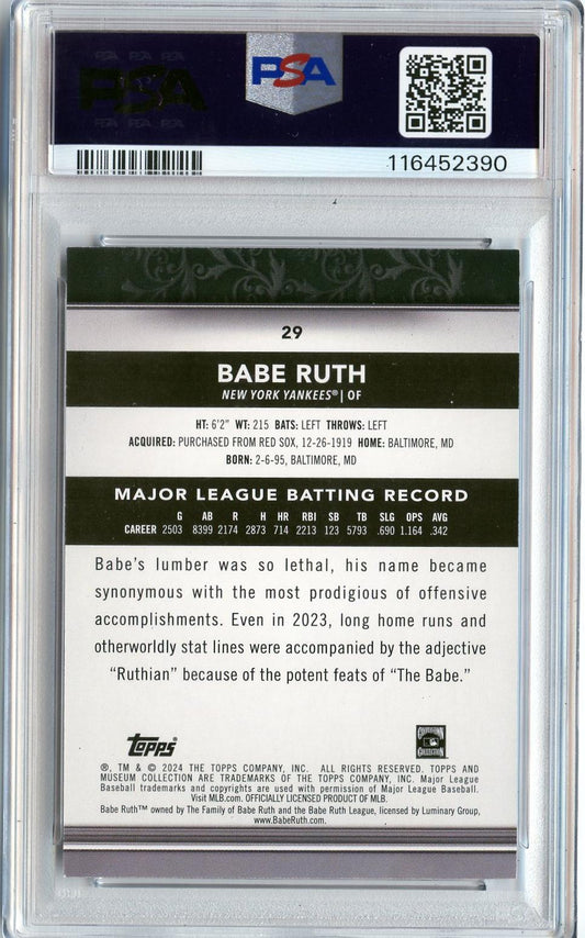2024 Topps Museum Collection #29 Babe Ruth Gold PSA 8 NM-MT 152/199