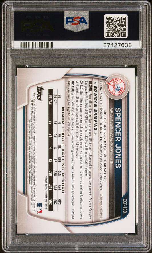 2023 Bowman Chrome Prospects #BCP139 Spencer Jones PSA 10 GEM MT