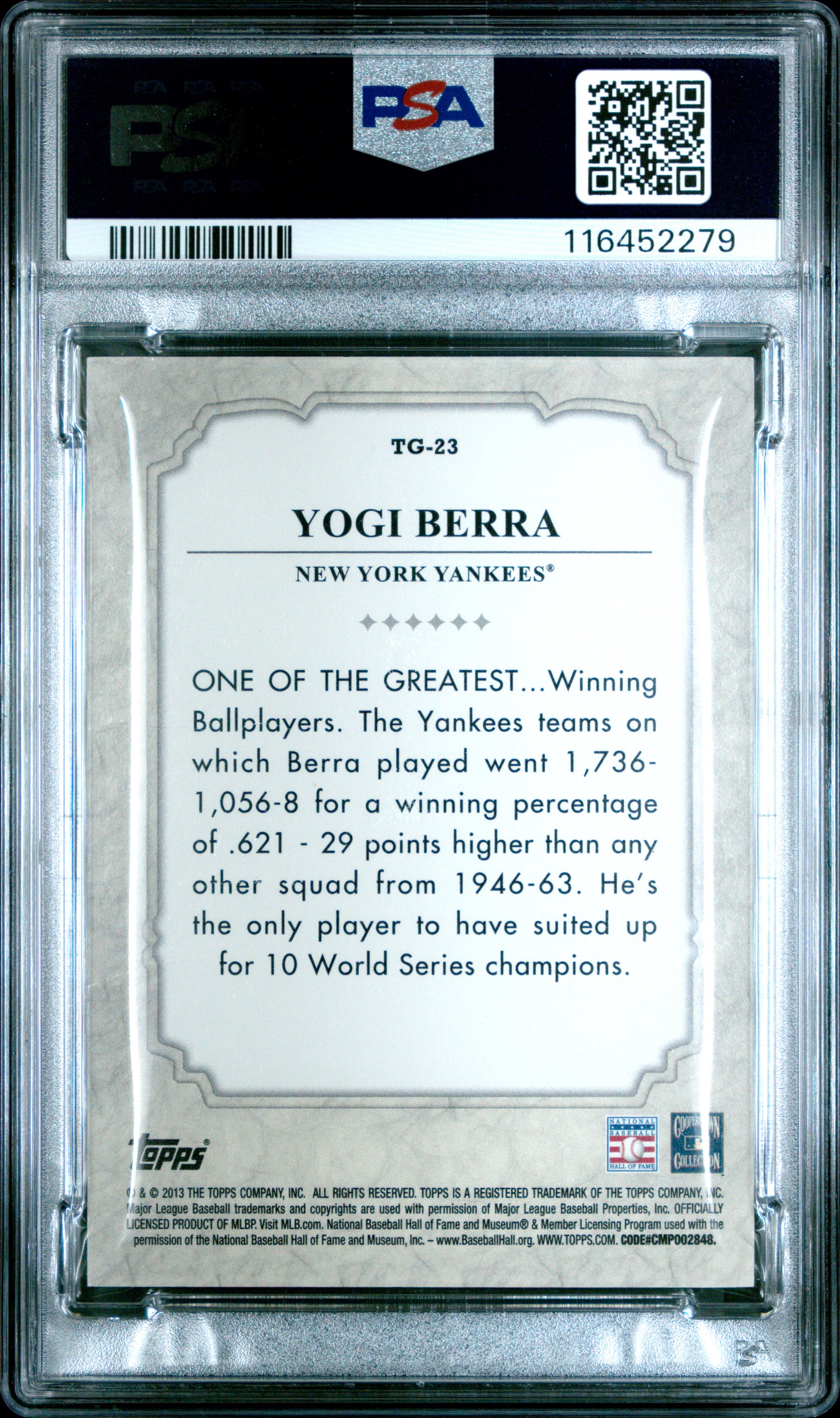 2013 Topps The Greats #TG-23 Yogi Berra The Greats-Gold PSA 3 VG 17/99