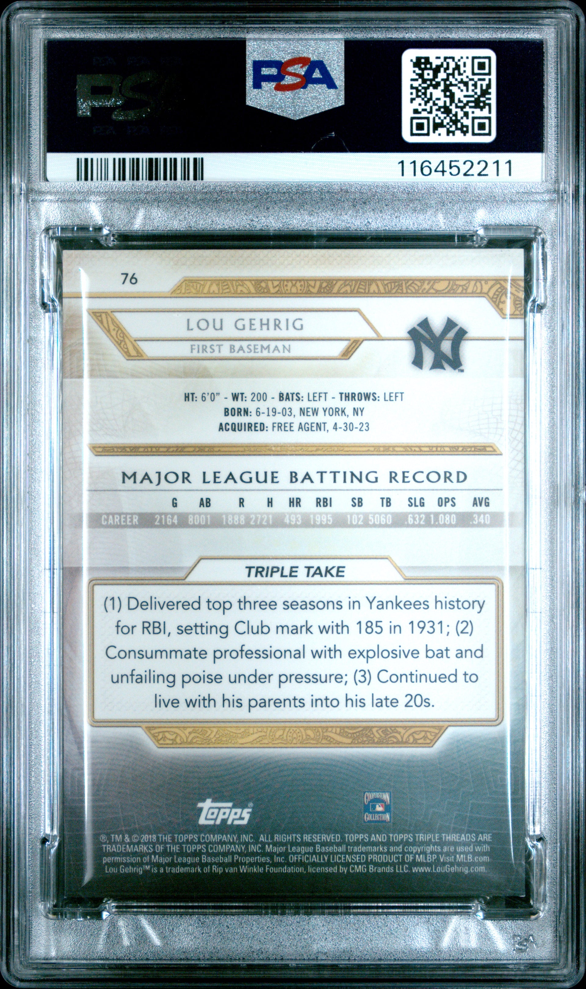2018 Topps Triple Threads #76 Lou Gehrig Sapphire PSA 8 NM-MT 14/25