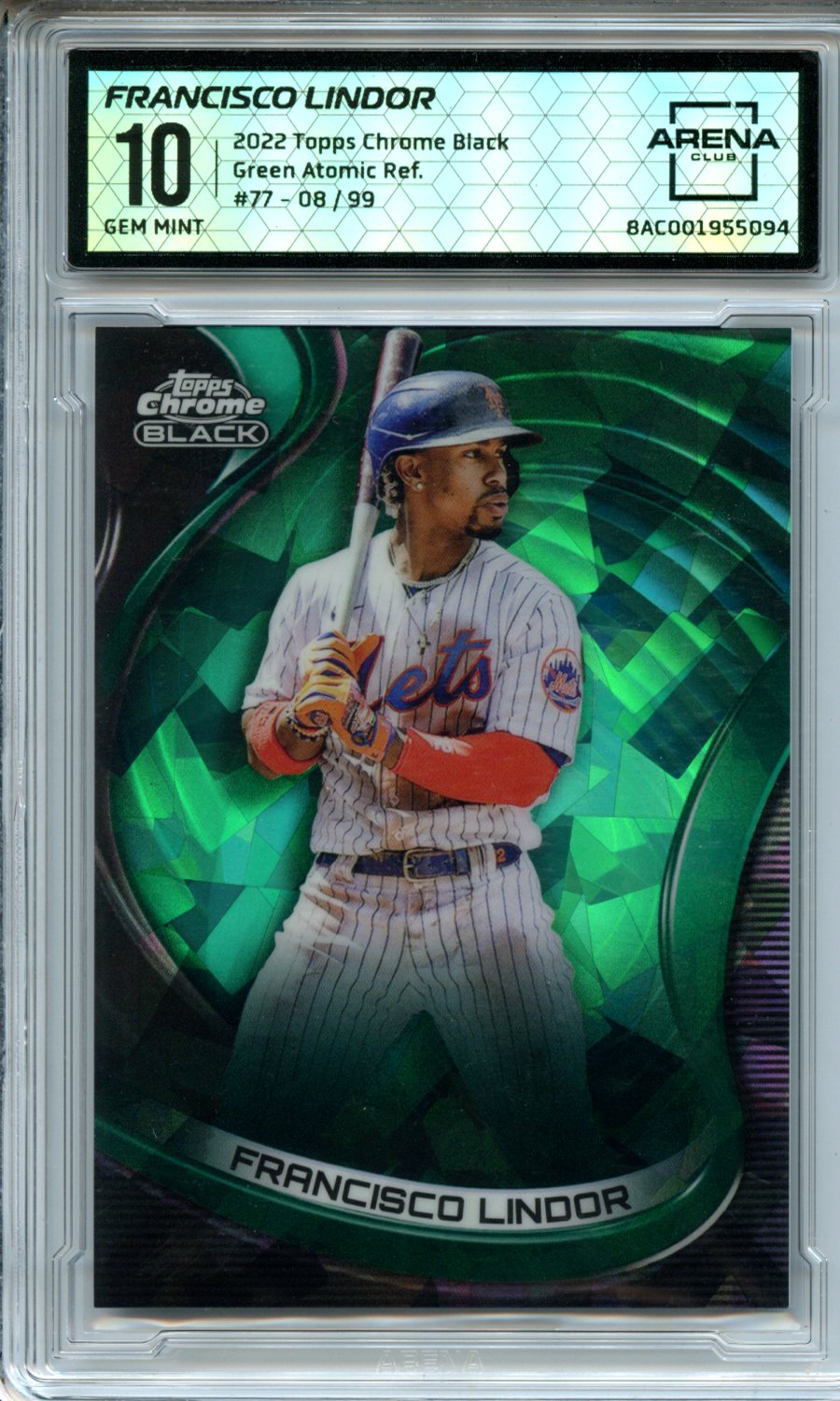 2022 Topps Chrome Black #77 Francisco Lindor Green Atomic Refractors Arena Club 10 GEM MINT 08/99