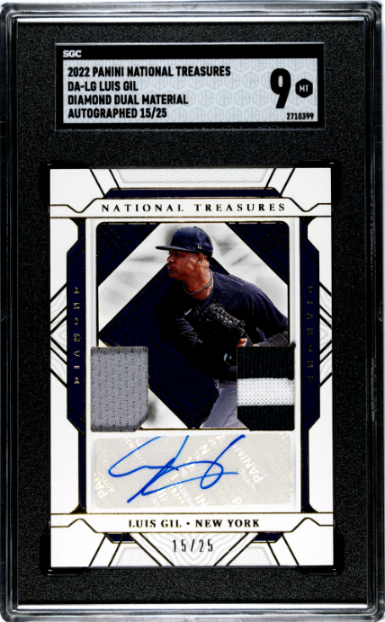 2022 Panini National Treasures #DA-LG Luis Gil Diamond Dual Material SGC 9 Autographed 15/25