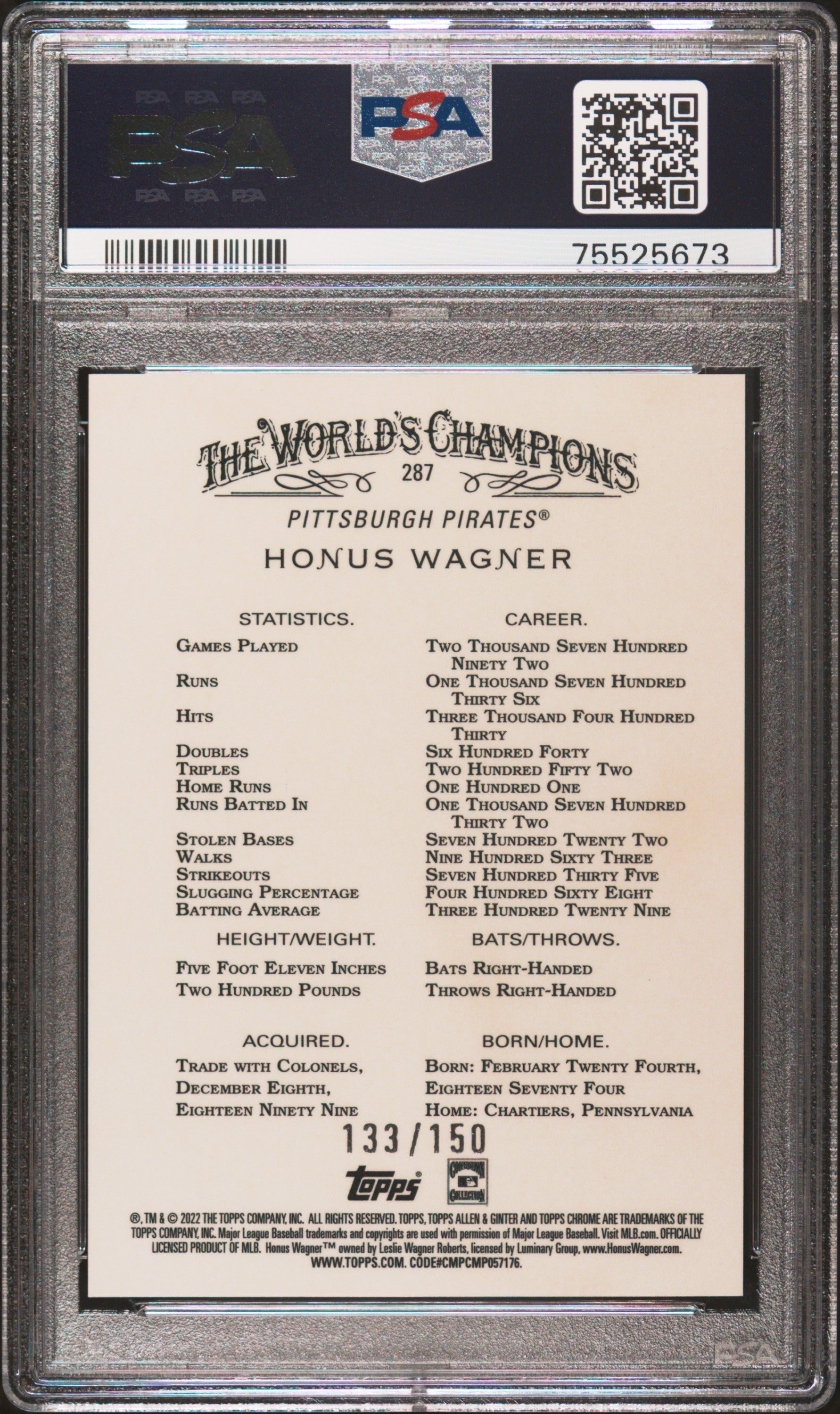 2022 Topps Allen & Ginter Chrome #287 Honus Wagner Blue Refractor PSA 10 GEM MT 133/150