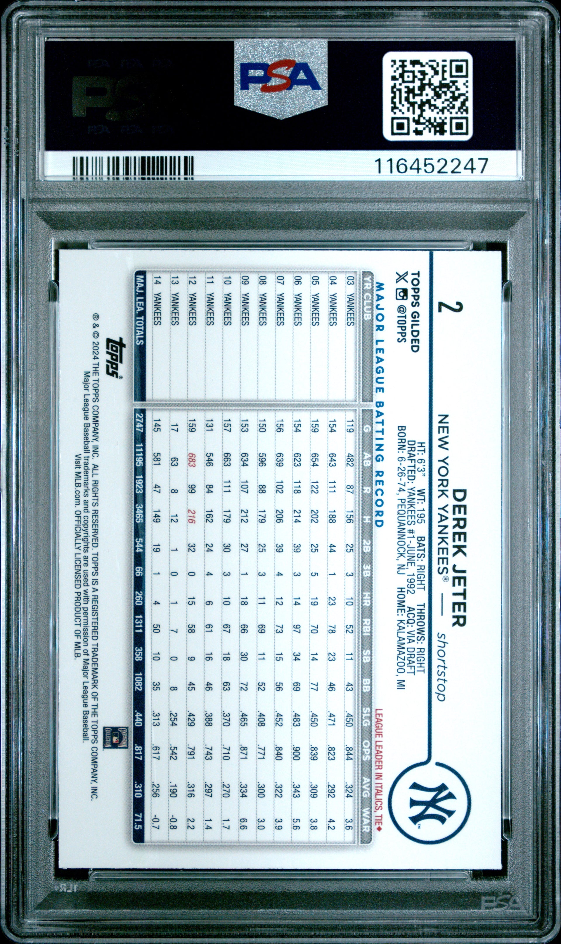 2024 Topps Gilded Collection #2 Derek Jeter PSA 9 MINT 92/99