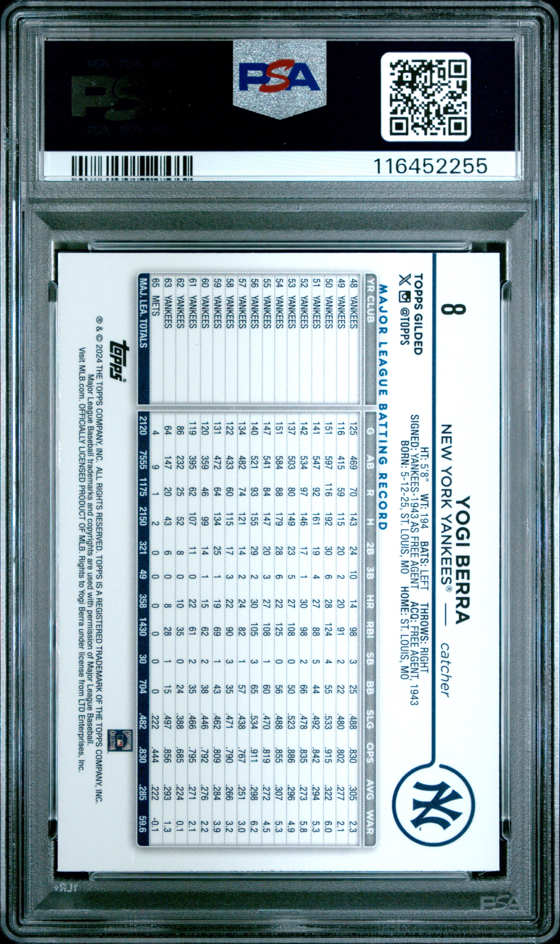 2024 Topps Gilded Collection #8 Yogi Berra Gold Wave PSA 10 GEM MT 02/75