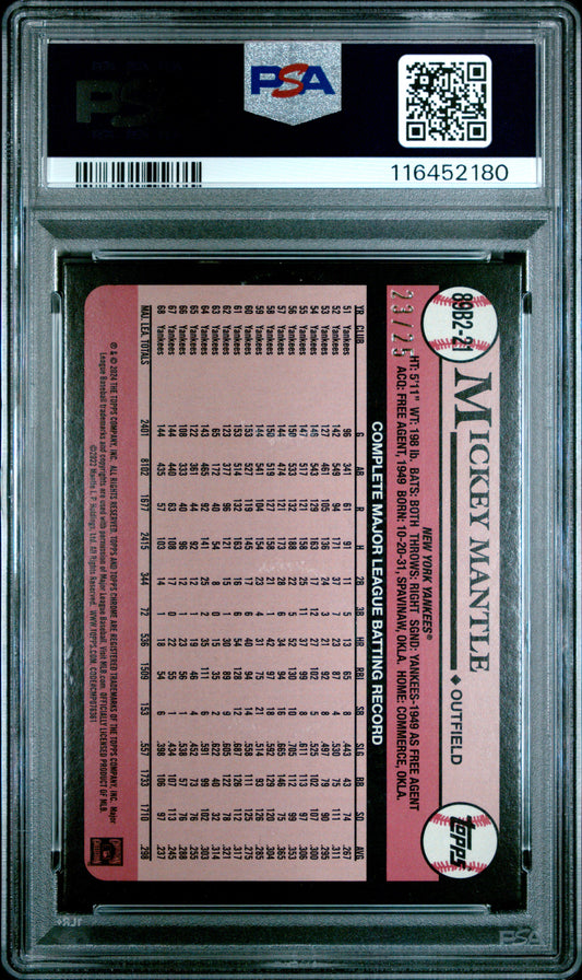 2024 Topps 1989 Topps Baseball #89B2-21 Mickey Mantle 1989 Topps-Foil-Orange PSA 9 MINT 23/25