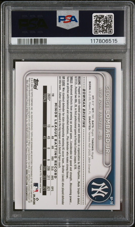 2024 Bowman Paper Prospects #BP79 George Lombard Jr. Blue PSA 9 MINT 055/150