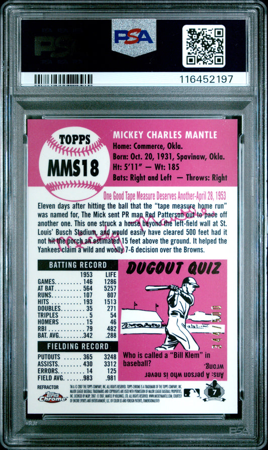 2007 Topps Chrome Mickey Mantle Story White Refractors #MMS27 PSA 9 MINT
