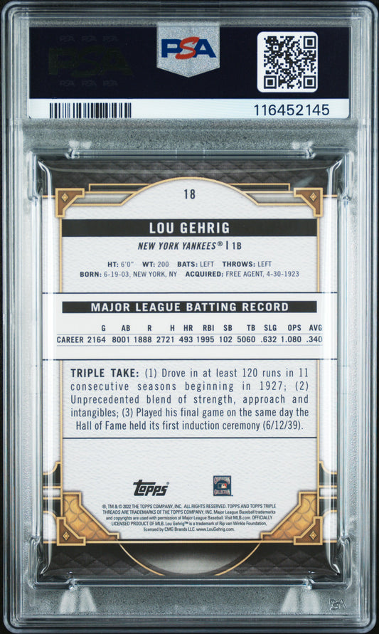 2022 Topps Triple Threads #18 Lou Gehrig Aquamarine PSA 8 NM-MT 022/150