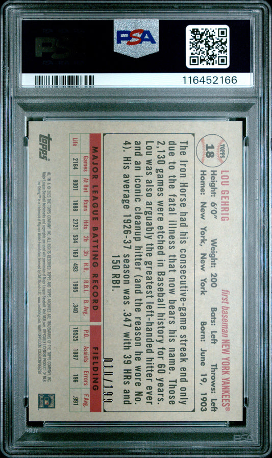 2023 Topps Archives #18 Lou Gehrig Rainbow Foil PSA 9 MINT 010/199