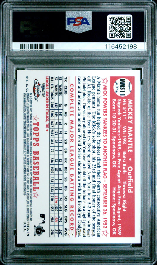 2007 Topps Chrome Mantle Story #MMS11 Mickey Mantle White Refractor PSA 8 NM-MT