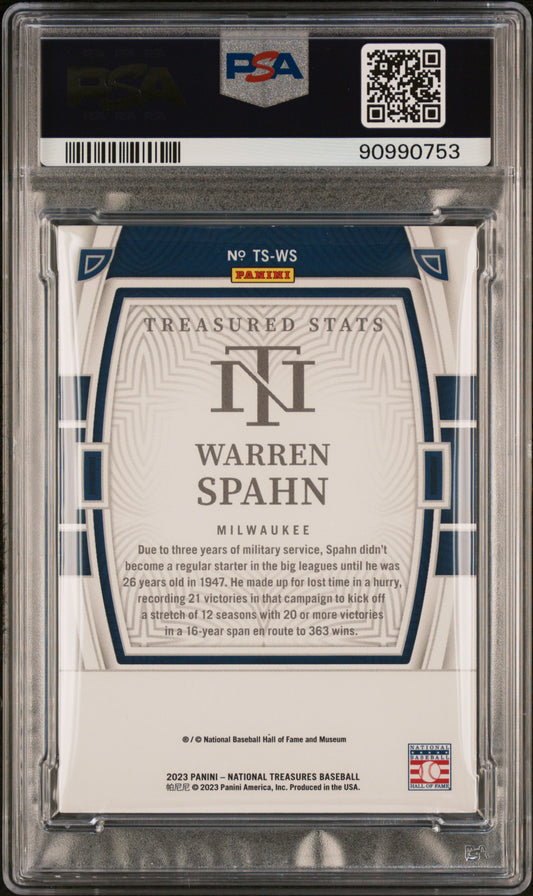2023 Panini National Treasures Treasured Stats #WS Warren Spahn 69/99 PSA 8 NM-MT