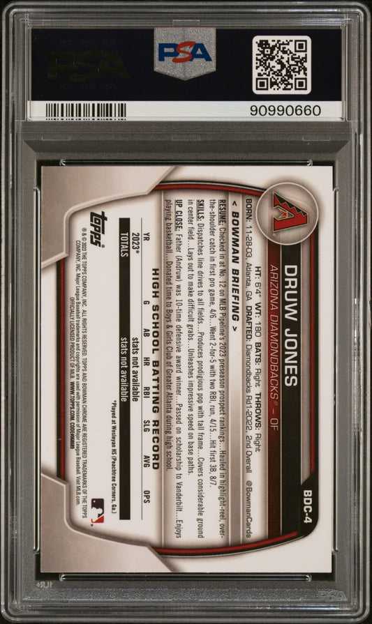 2023 Bowman Draft #BDC4 Druw Jones Chrome-Green Refractor PSA 10 GEM MT 20/99
