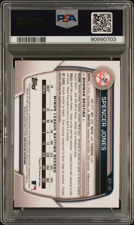 2023 Bowman Chrome Prospects #BCP139 Spencer Jones PSA 8 NM-MT