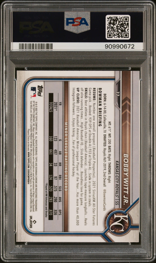 2022 Bowman Chrome #77 Bobby Witt Jr. Rookie Card PSA 9 MINT