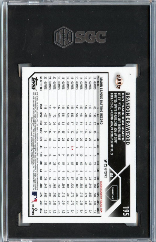 2023 Topps Chrome #195 Brandon Crawford Negative Refractors SGC 9.5 MT+