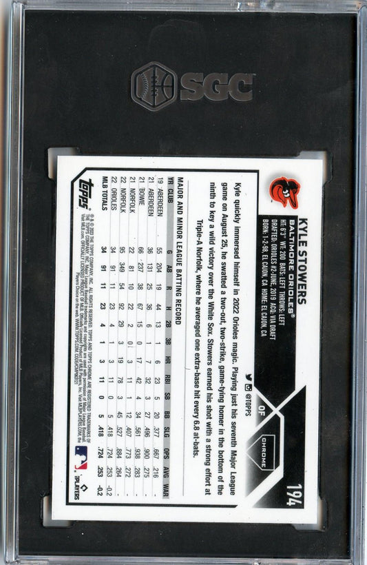 2023 Topps Chrome #194 Kyle Stowers RC SGC 8.5 NM-MT+