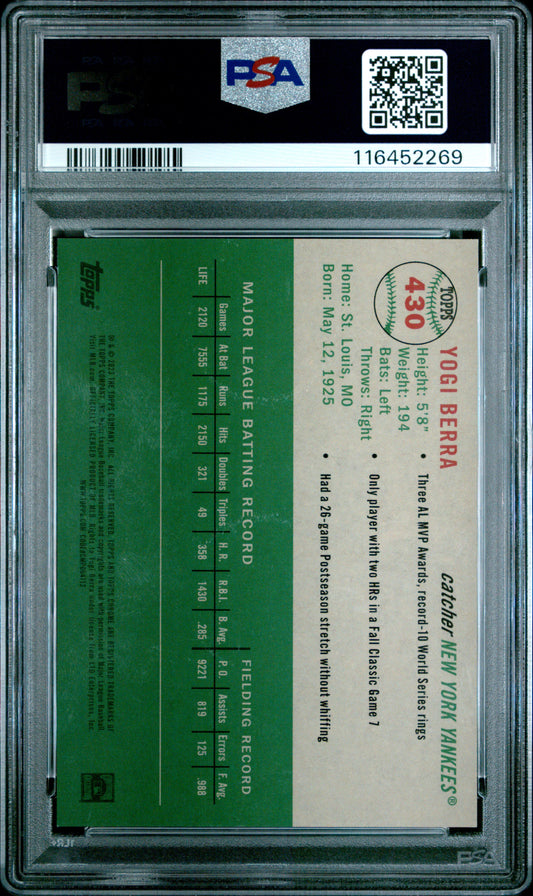 2023 Topps Chrome Platinum Anniversary #430 Yogi Berra Topps Refractor PSA 10 GEM MT 363/499