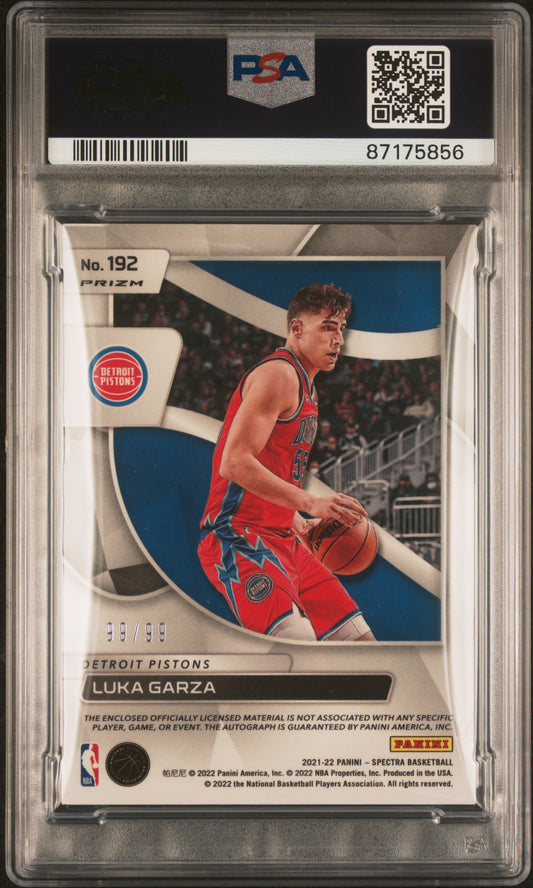 2021 Panini Spectra #192 Luka Garza Jersey Auto-Celestial Rookie Patch PSA 8 NM-MT Autograph 10 99/99