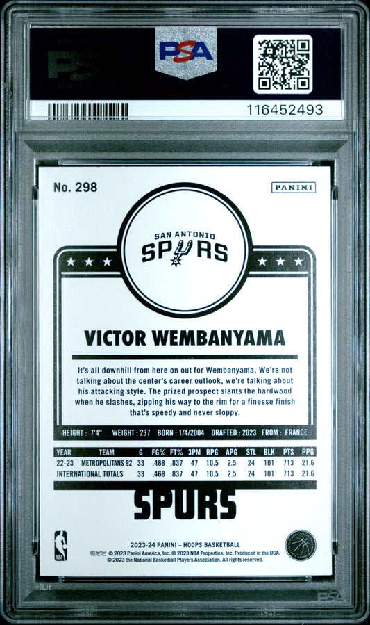 2023 Panini NBA Hoops #298 Victor Wembanyama Rookie Card PSA 10
