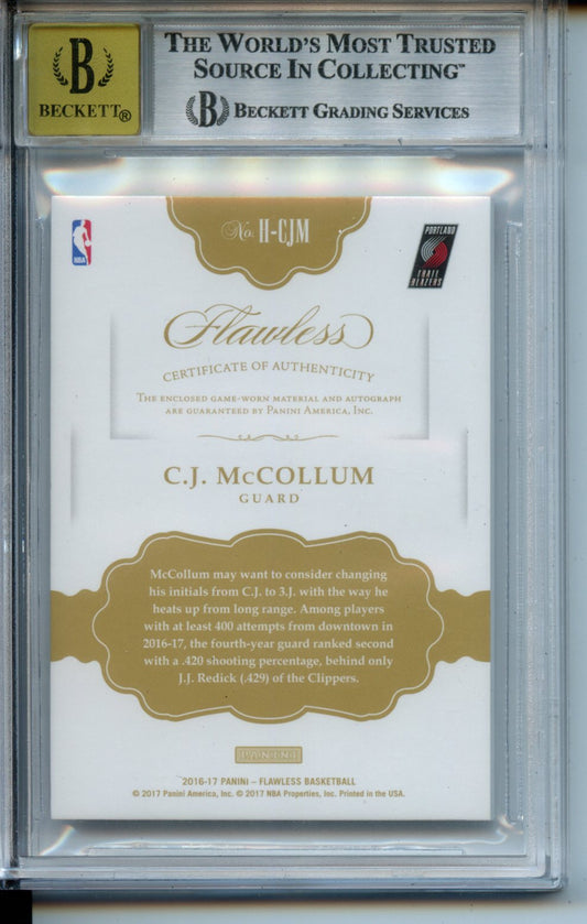 2016-17 Panini Flawless Horizontal Patch Autographs Gold #28 C.J. McCollum BGS 9 MINT Autograph 10 07/10