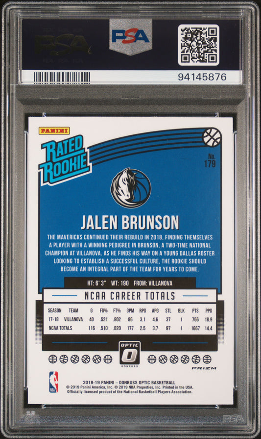 2018 Panini Donruss Optic #179 Jalen Brunson Purple Rated Rookie PSA 10 GM Autograph 9