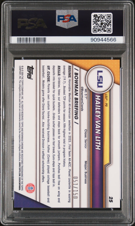 2023 Bowman University Chrome #25 Hailey Van Lith Fuchsia Mini Diamond PSA 10 GEM MT 051/150