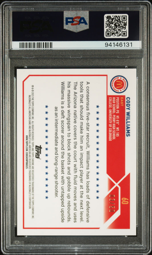 2023 Topps Chrome Mcdonald'S All-American #60 Cody Williams 03/50 Gold Refractor PSA 10 GEM MT