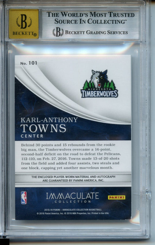 2015-16 Immaculate Collection #101 Karl-Anthony Towns 49/99 Rookie Patch BGS 8 NM-MT Autograph 10