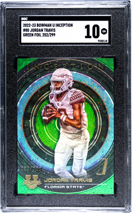 2022-23 Bowman University Inception #80 Jordan Travis Green Foil SGC 10 GM 252/299