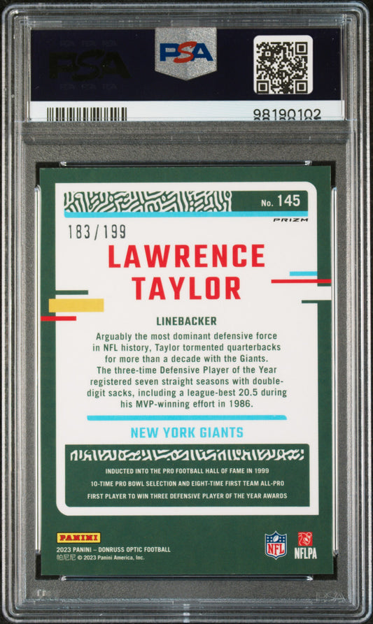 2023 Panini Donruss Optic #145 Lawrence Taylor Blue PSA 9 MINT 183/199