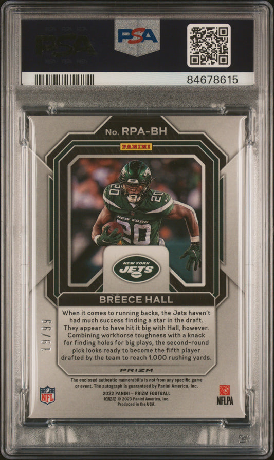 2022 Panini Prizm Rookie Patch Autographs #RPABH Breece Hall PSA 10 GEM MT Autographed 10 19/99