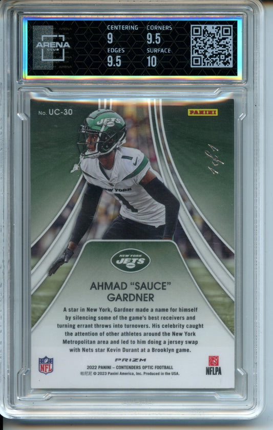 2022 Panini Contenders Optic #UC-30 Ahmad "Sauce" Gardner Up and Coming Gold Vinyl Rookie Card 1/1 Arena Club 9.5 MINT+