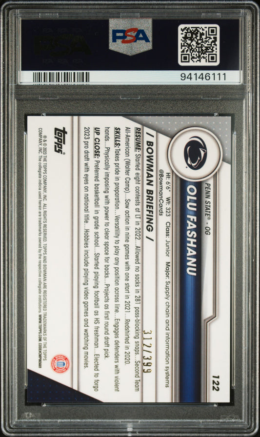 2023 Bowman University Chrome #122 Olu Fashanu Purple Refractor PSA 10 GEM MT 312/399