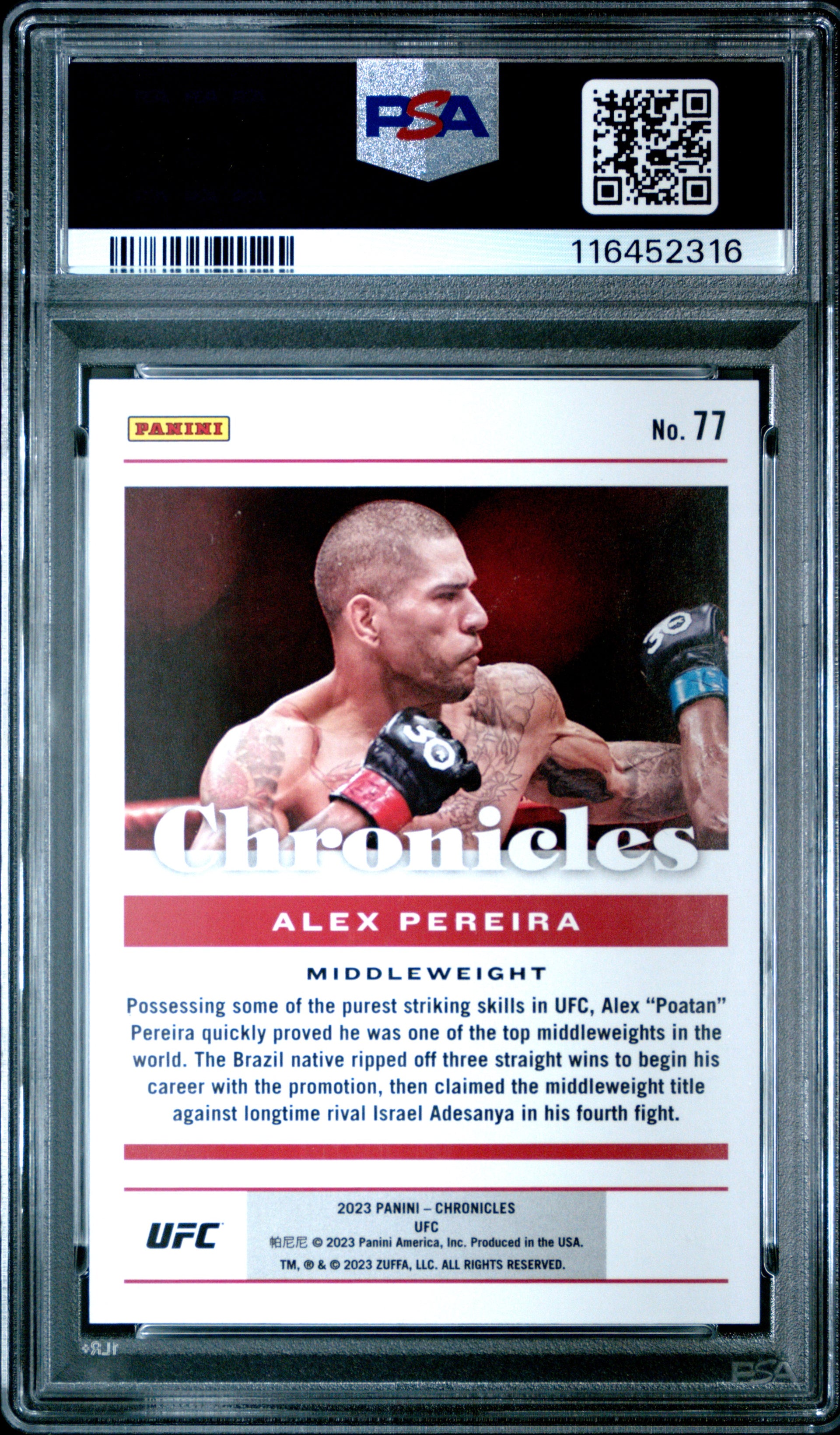 2023 Panini Chronicles UFC #77 Alex Pereira Red Rookie Card PSA 8 NM-MT 010/199