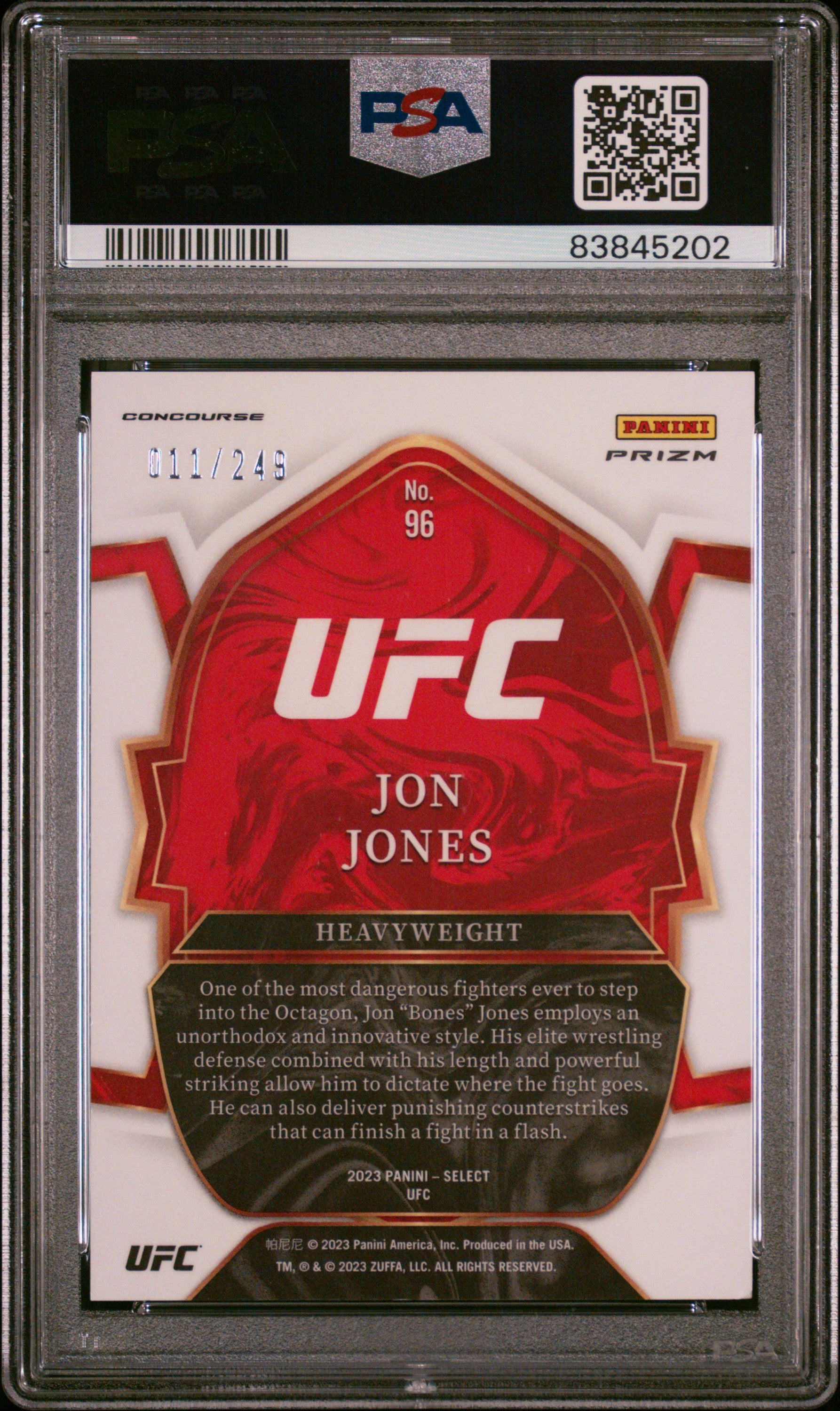 2023 Panini Select UFC #96 Jon Jones Light Blue PSA 8 NM-MT 011/249