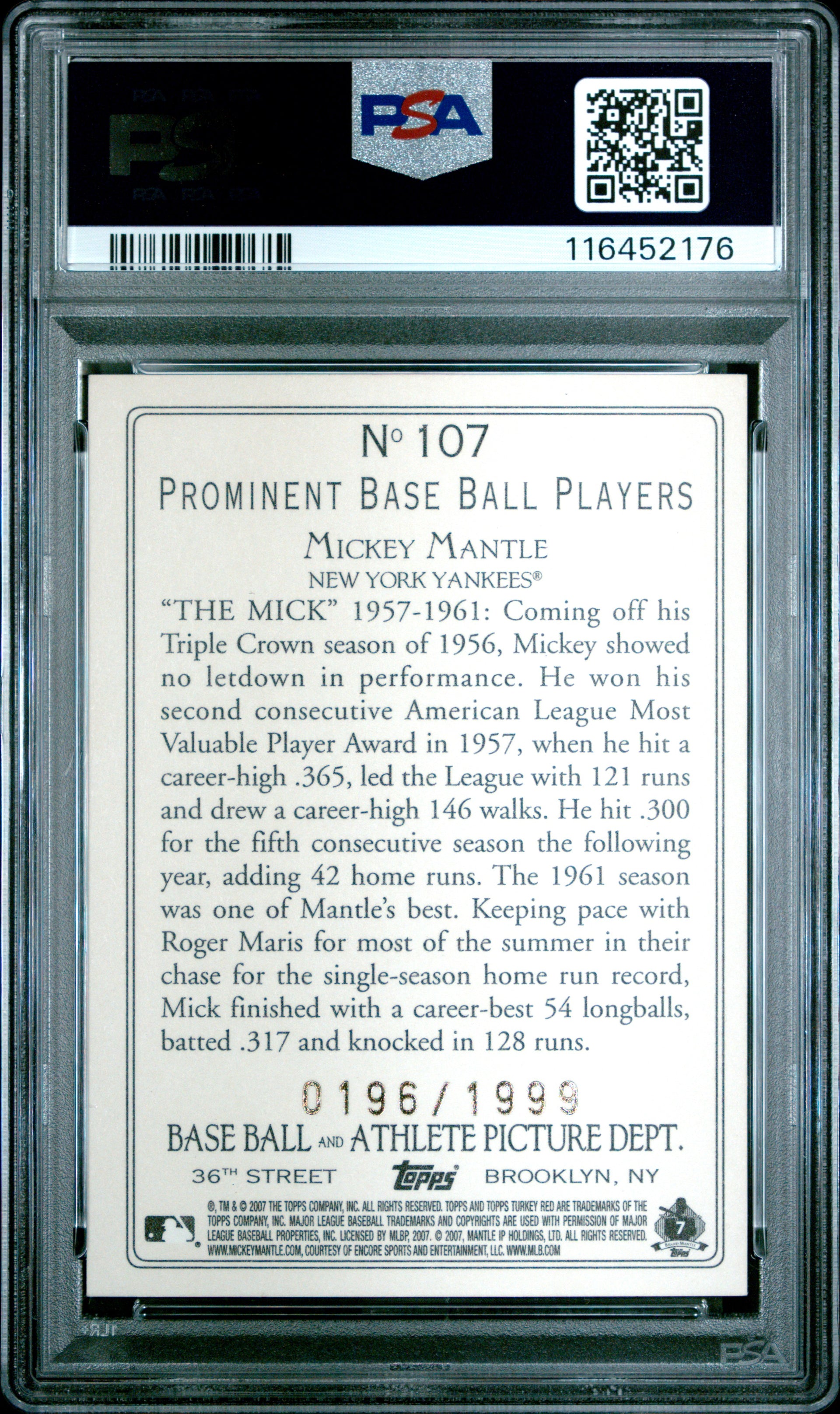 2007 Topps Turkey Red Chrome #107 Mickey Mantle Chrome PSA 8 0196/1999