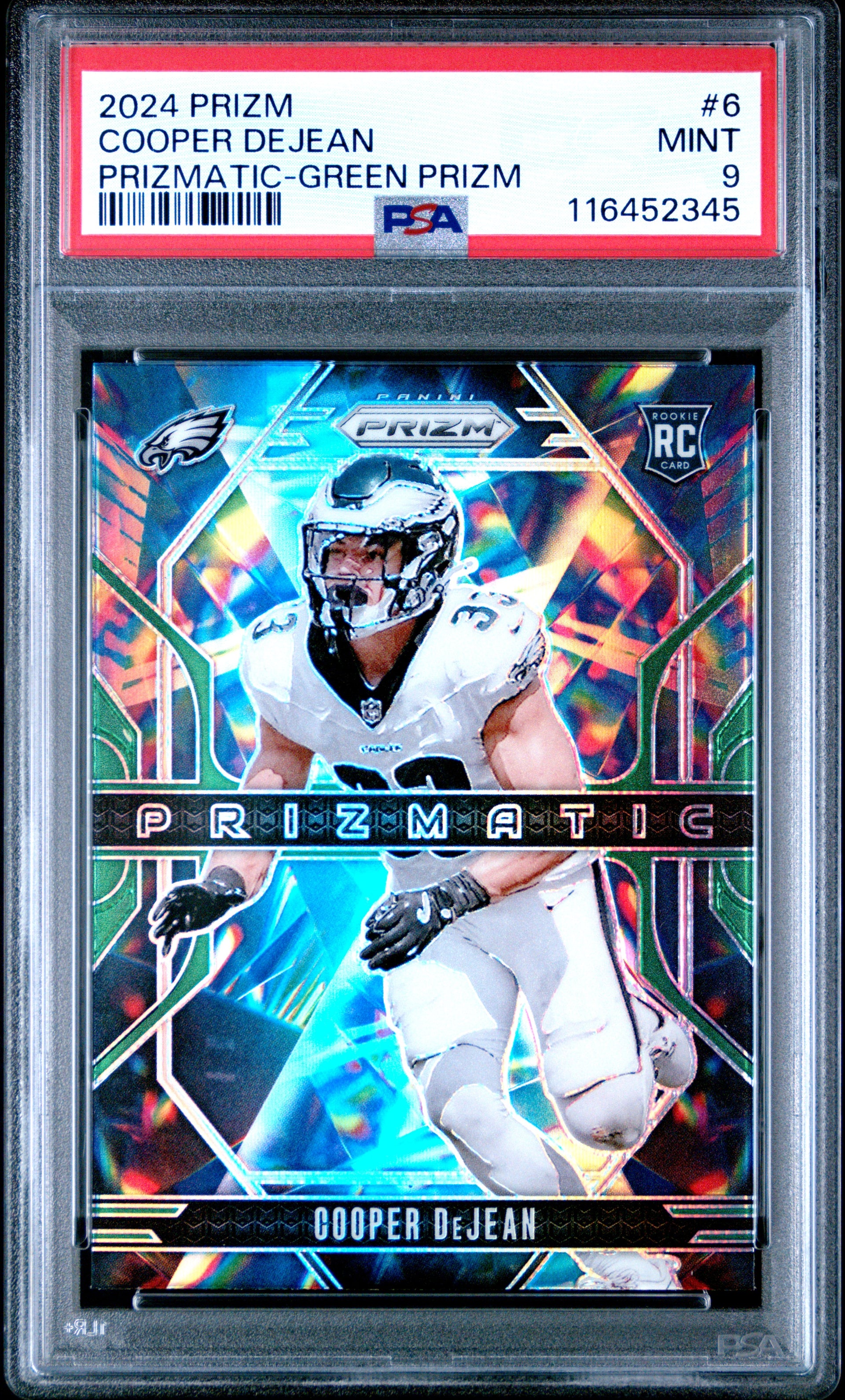 2024 Panini Prizm Prizmatic #6 Cooper Dejean Prizmatic-Green Prizm Rookie Card PSA 9 MINT