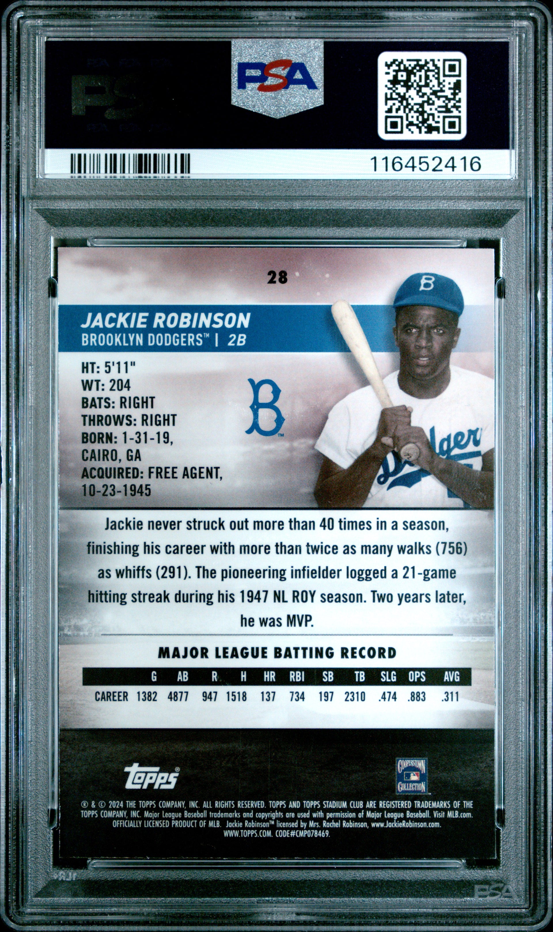 2024 Topps Stadium Club #28 Jackie Robinson Chrome-Purple Refractor PSA 10 GEM MT 12/75