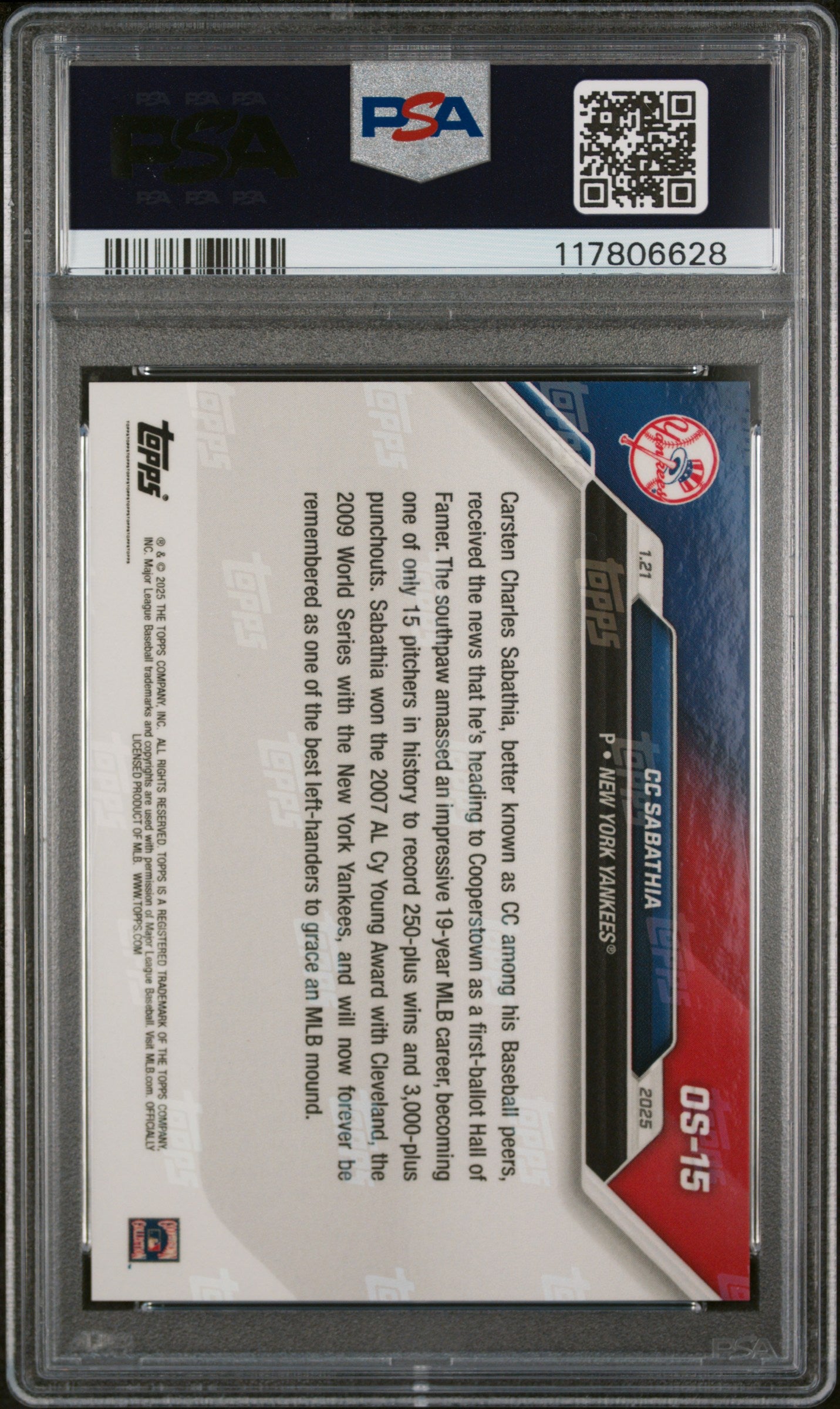 2024 Topps Now Offseason #OS15 CC Sabathia PSA 10 GEM MT